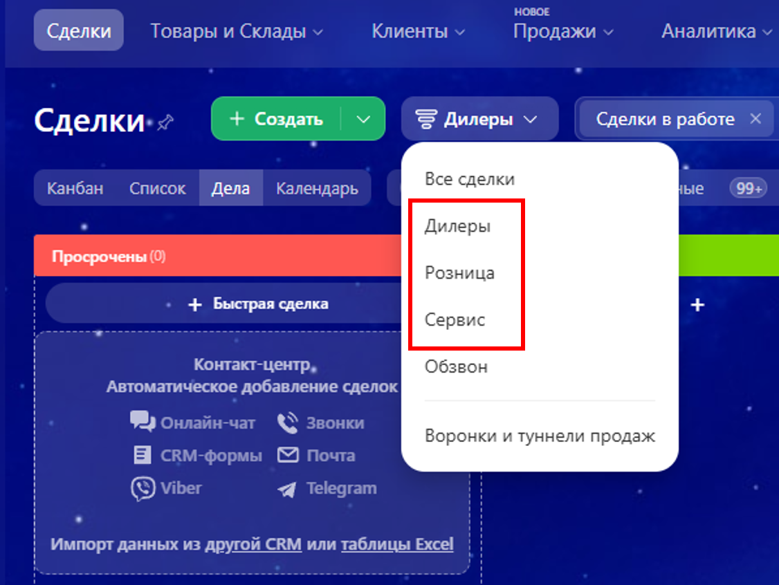 Все воронки сразу: что получите, внедрив «Дилеры» + «Розница» + «Сервис»